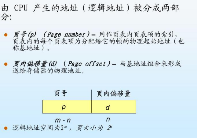 进程页表:每一个进程有一个页表,描述该进程的每个逻辑页占用的物理页框号。页表存放在内存中。(以页框形式分配内存)
