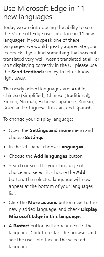 前几天还说 Microsoft Edge Insider 没有中文语言,今天就更新了,这效率真是高。