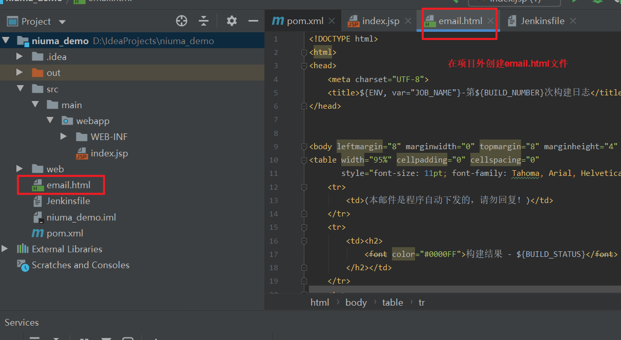 subject: '构建通知:${PROJECT_NAME} - Build # ${BUILD_NUMBER} - ${BUILD_STATUS}!',body: '${FILE,path="email.html"}', to: '1321519531@qq.com'