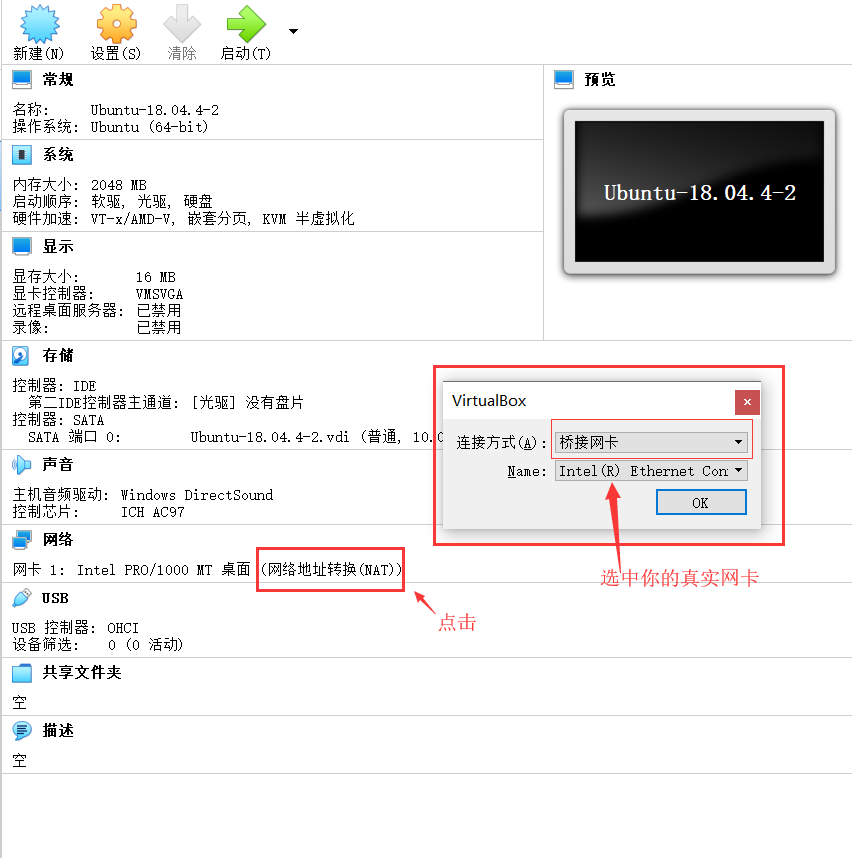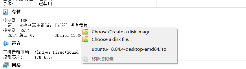 - 添加光驱碟片 选择choose a disk file 选中前面下载的ubuntu镜像文件 如ubuntu-18.04.4-desktop-amd64.iso
