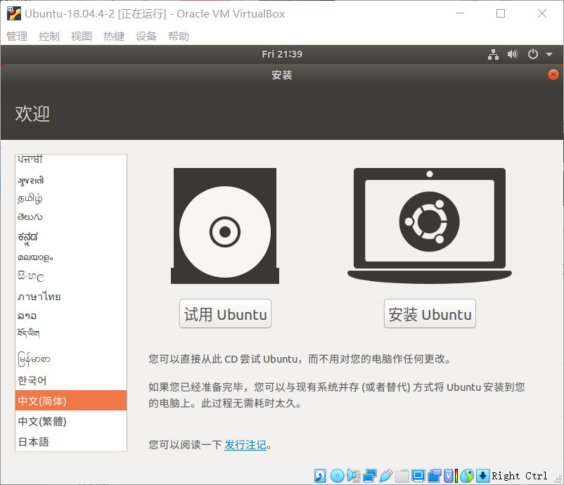 打开Ubuntu-18.04.4-2虚拟机,等待加载后进入安装界面