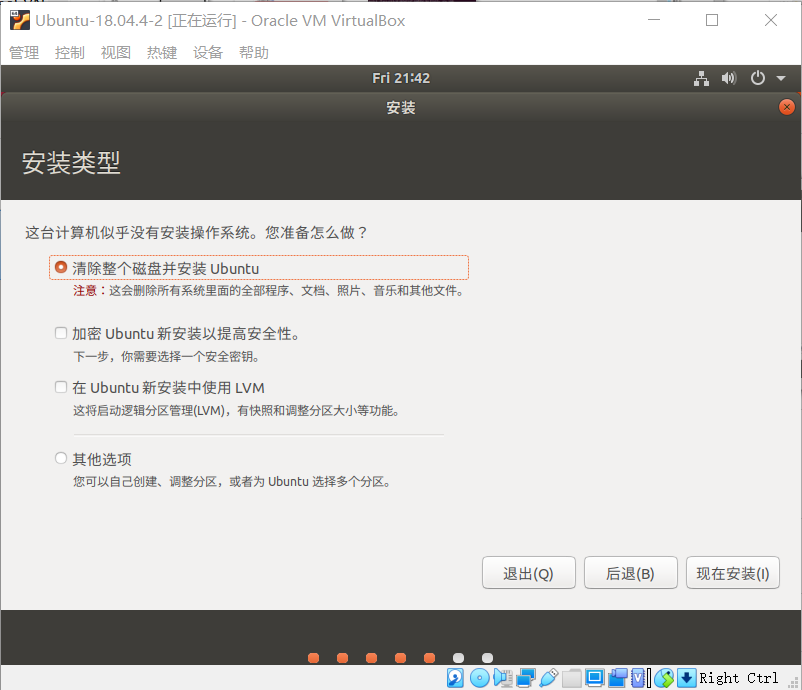 虚拟磁盘-现在创建虚拟磁盘-选择VDI(VirtualBox 磁盘映像)