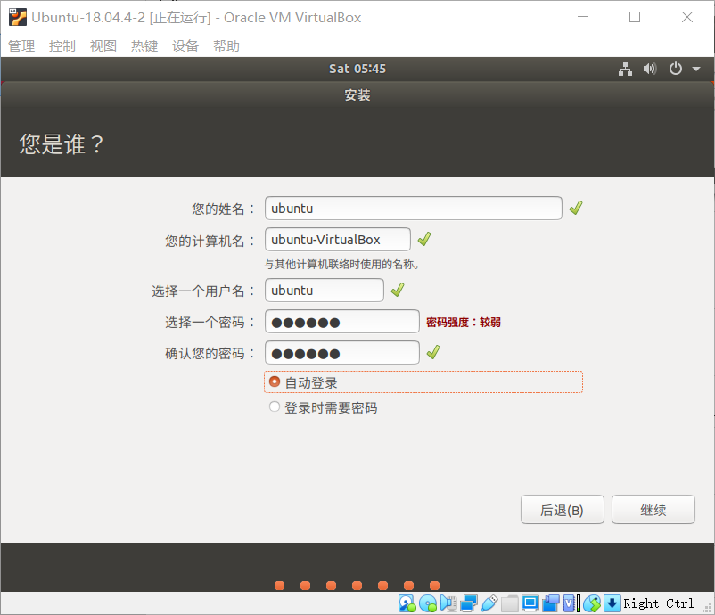 - 然后就输入你自己的信息拉,我这里用户名密码都是ubuntu