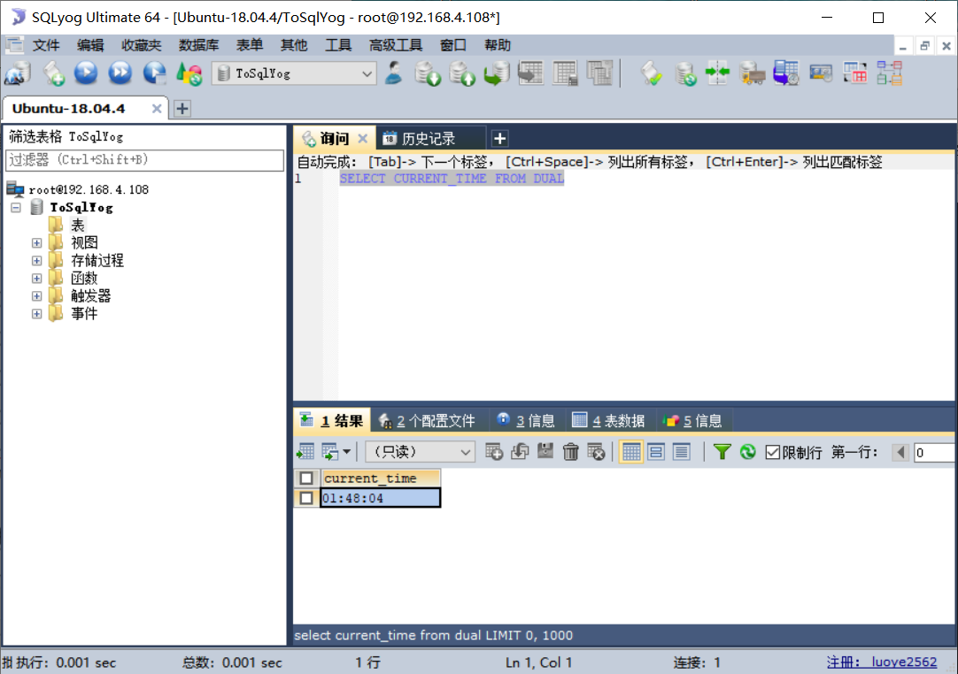 SELECT CURRENT_TIME FROM DUAL然后F8试一下
