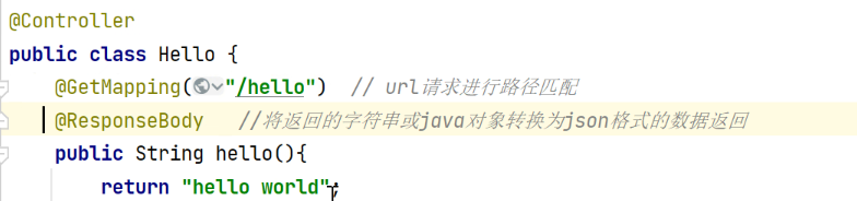- @getmapping注解 根据请求匹配路径,若匹配成功,返回对象处理