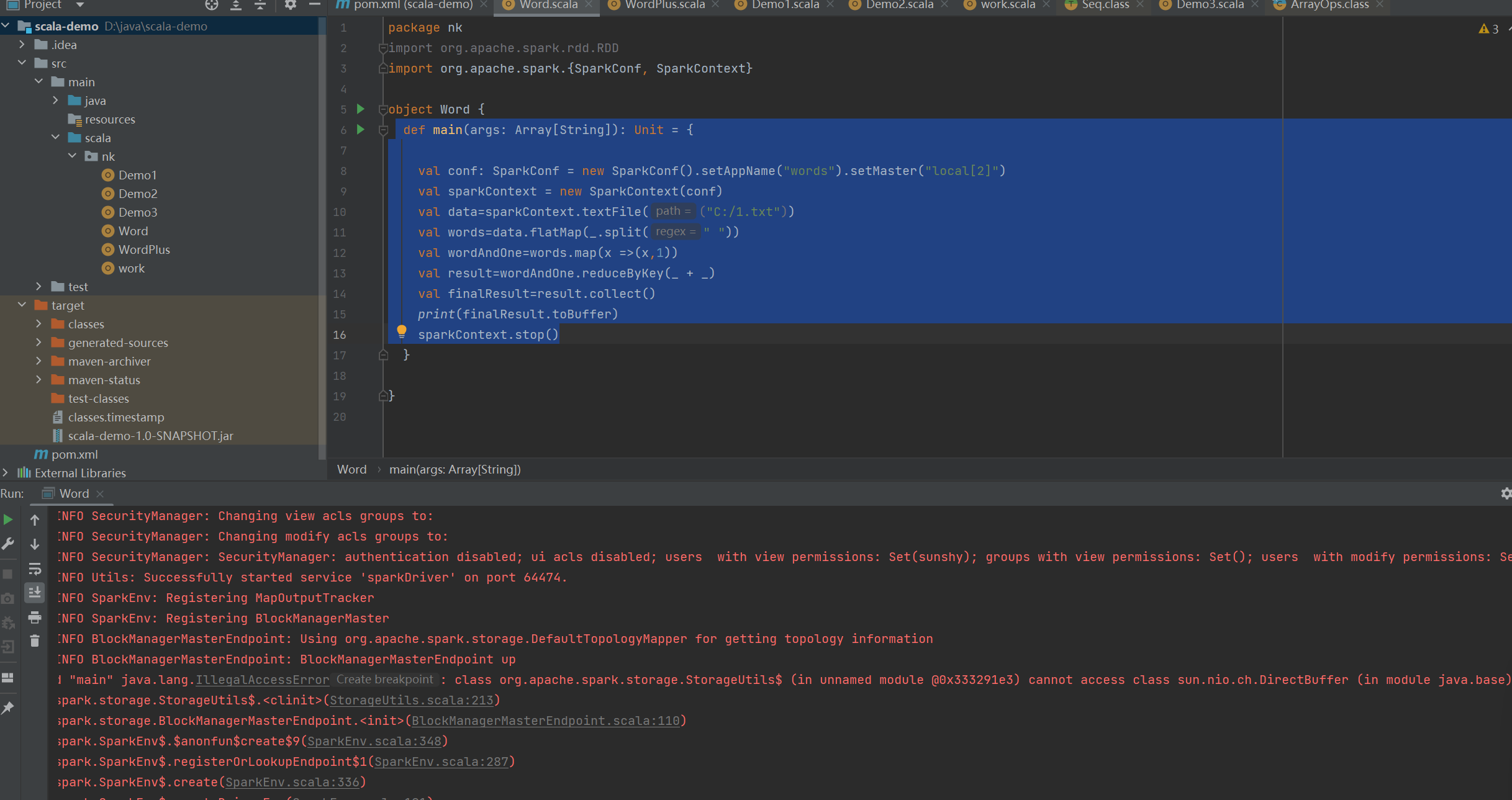 scala> sc.textFile("file:///node1/usr/1.test").fat 不用加节点名默认是本地文件