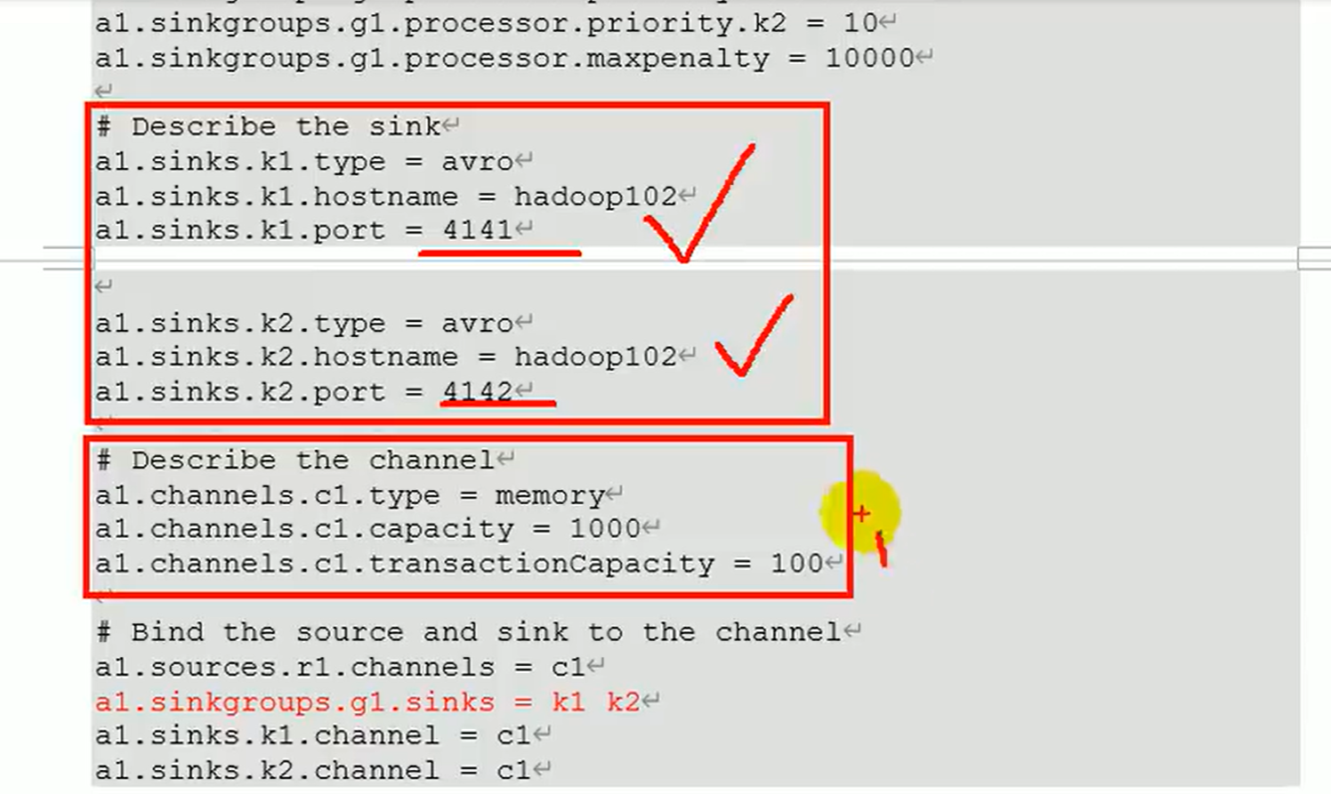 - 负载均衡和故障转移 首先就要求有sink组 group1 K! K2