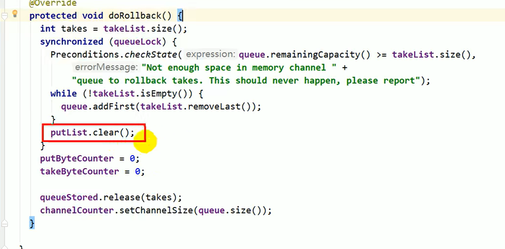 - flume回滚机制 putlist回滚 直接清空!非常简单,rollback接口实现了一个dorookback方法,所以会丢数据!