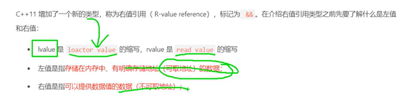 - 通过&&就能初始化一个右值引用,而不能通过左值初始化一个右值引用!