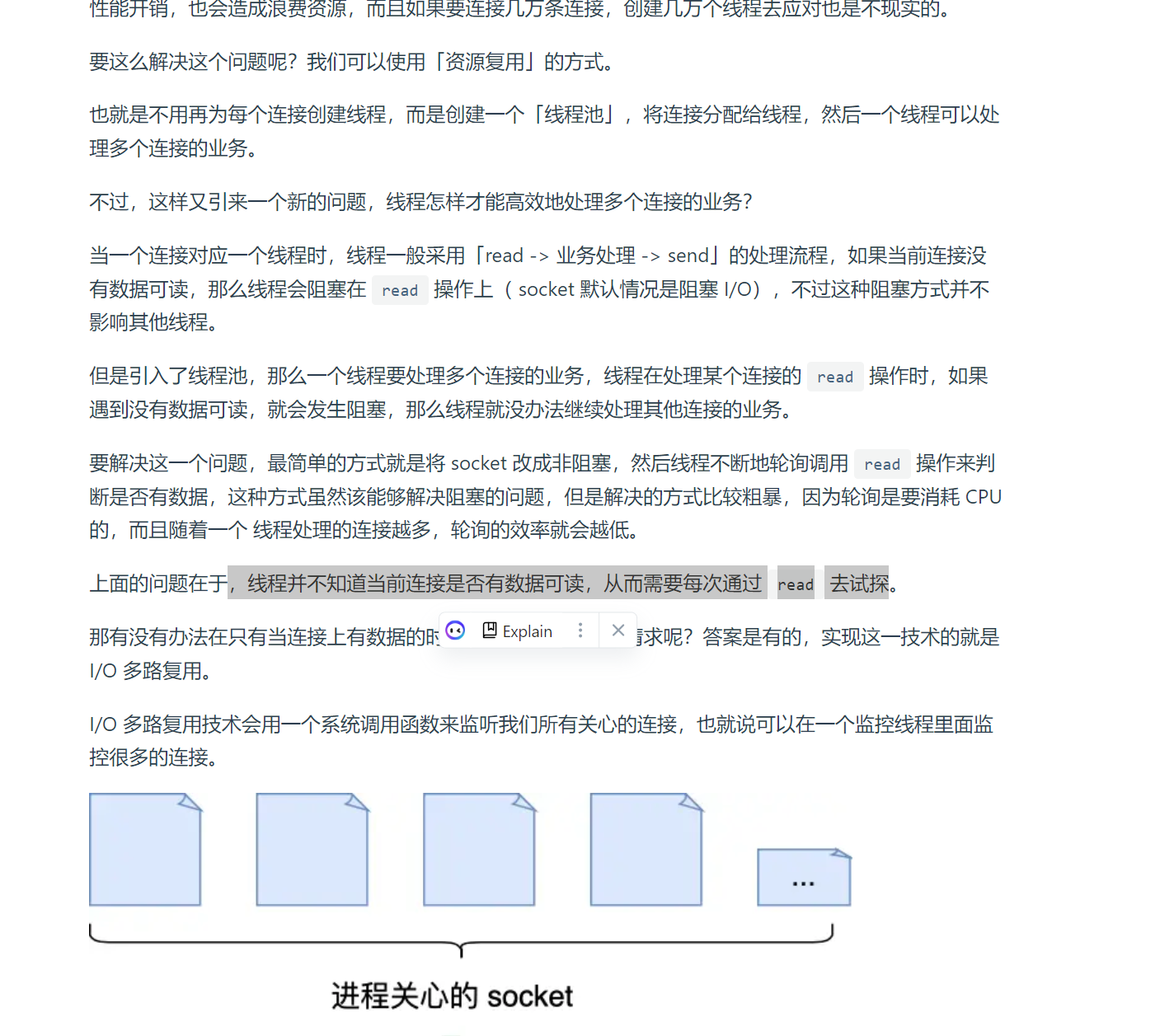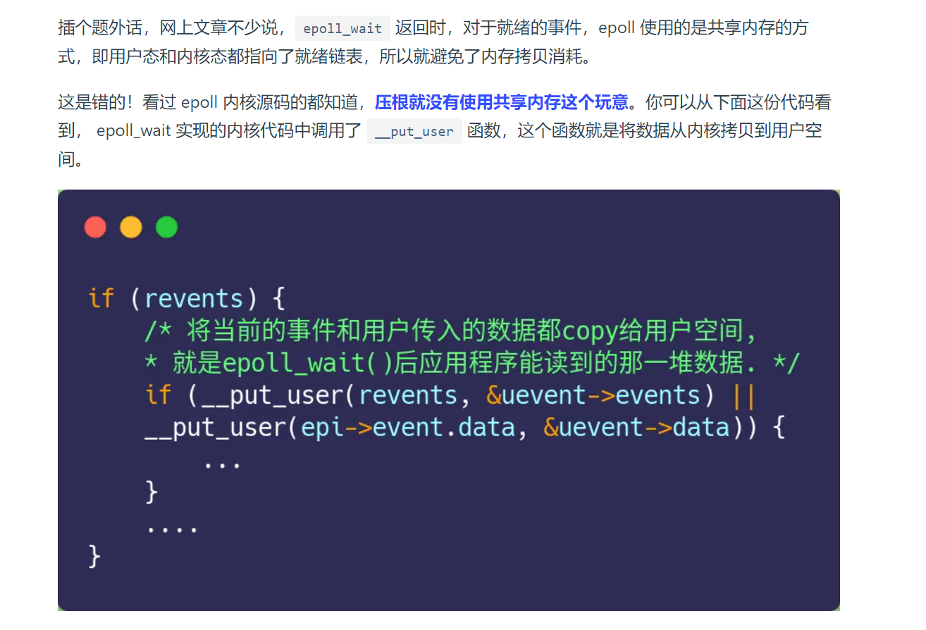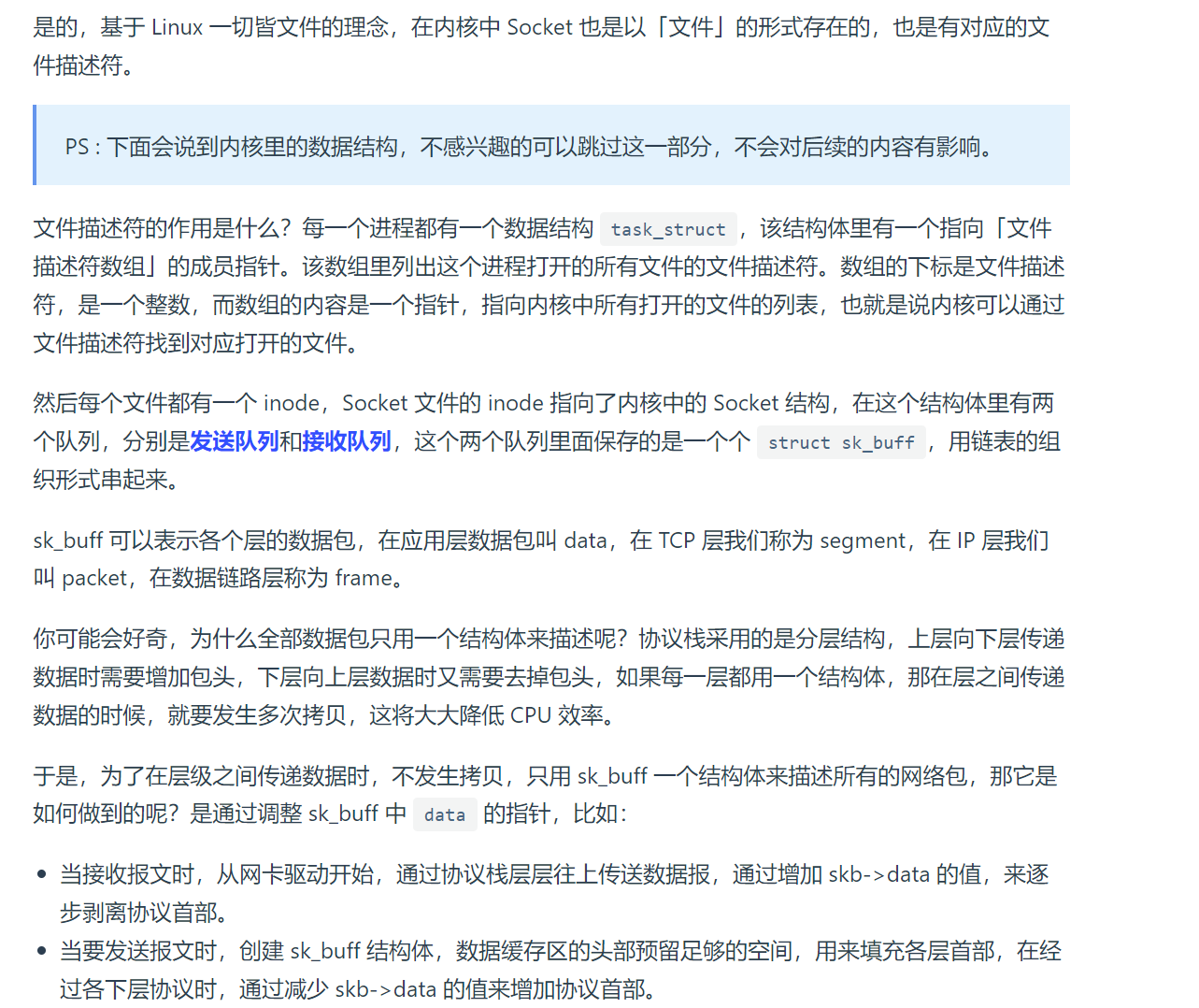 accept在做什么事?从全连接established队列中拿出一个socket文件,iNode在内核中有对应的socket结构体,data指针,所以可以实现内核态到用户区的复制,这个socket文件在进程中的