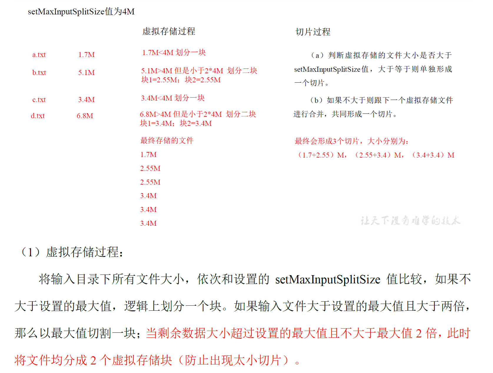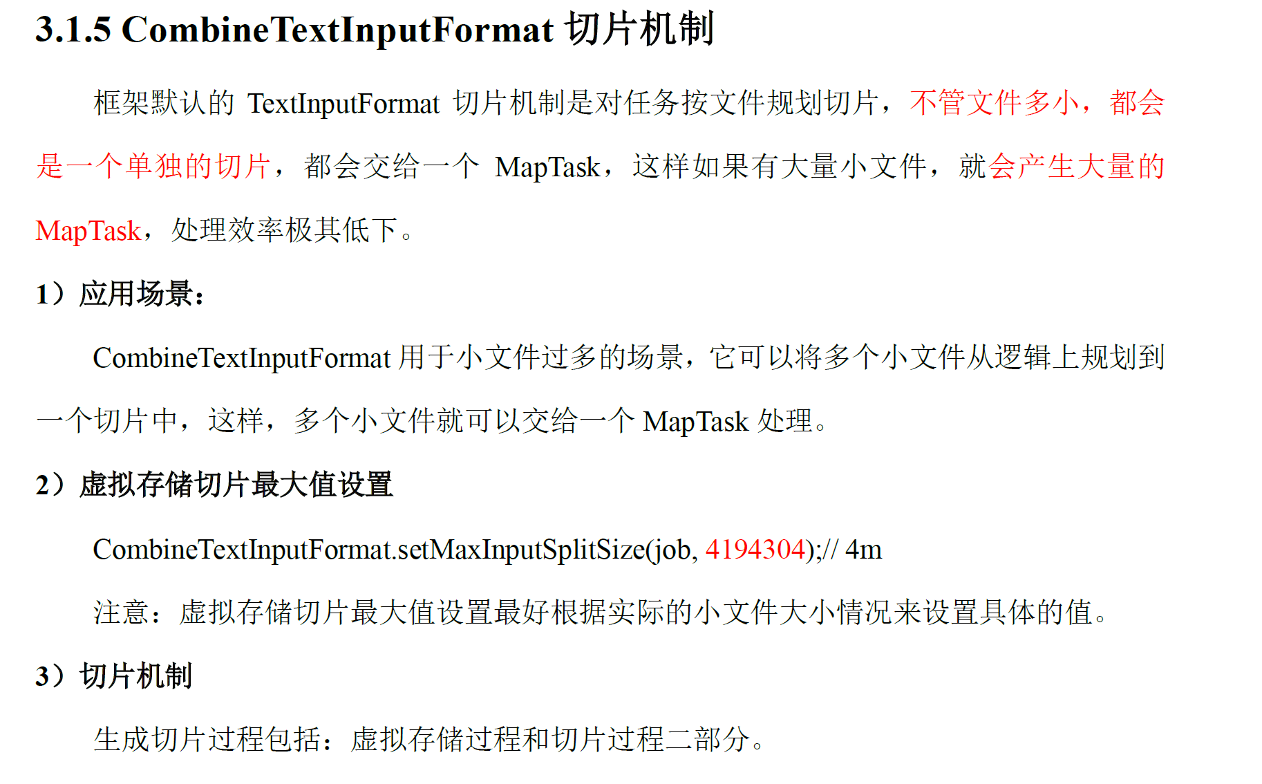 - 为什么combinetsxt inputformat可以减少切片?这是切片的本质决定的,切片并不是真的把文件分割了,而是逻辑上进入数据量的大小,所以当然可以逻辑上合并