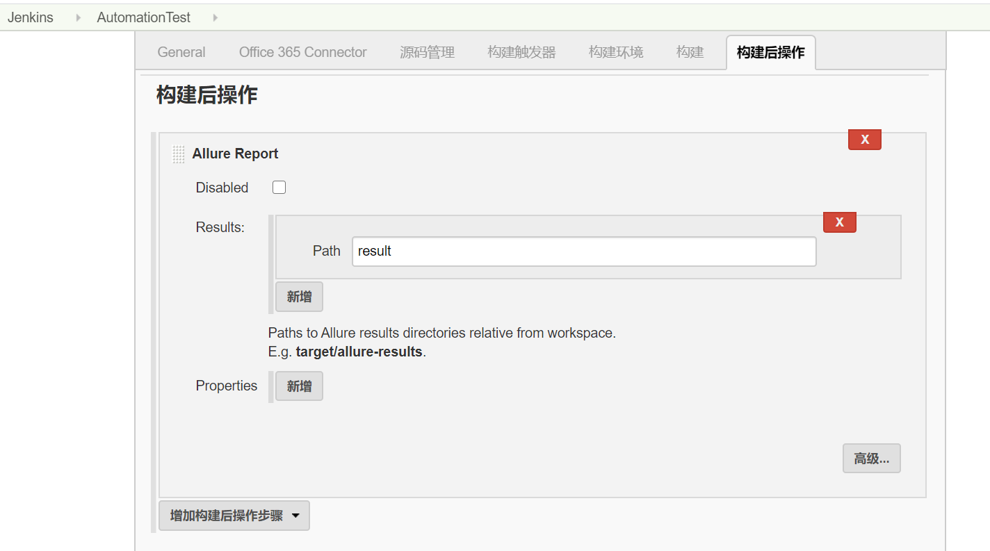 - 项目里增加“构建后操作”,将result文件夹里的内容通过allure生成html报告,相当于把之前的 allure generate D:/Python/mama/result -o D:/Python/mama/report --clean,放到这一步来做。
