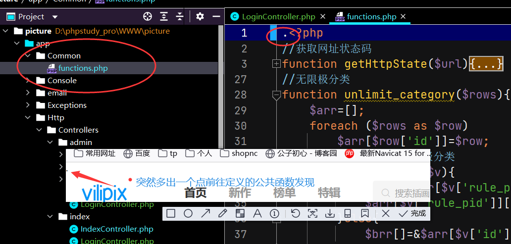 laravel框架模板上方突然空出来一行发现定义的公共函数有问题<?php 前面多了一个点删掉就可以啦