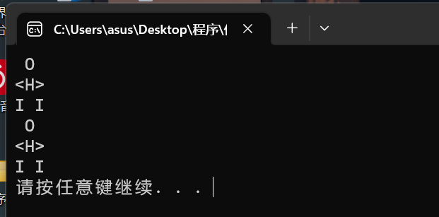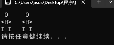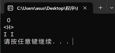 #include<stdio.h> #include<stdlib.h> int main() { printf(" O O\n"); printf("<H> <H>\n"); printf("I I I I\n"); system("pause"); return 0; }