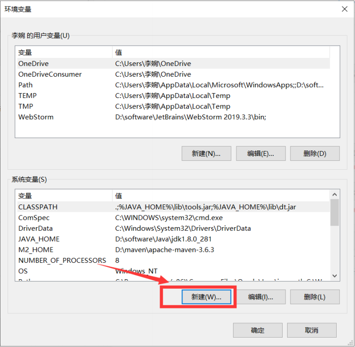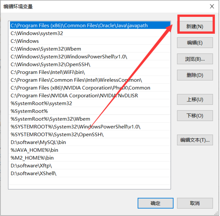 6)新建 (值为:%M2_HOME%\bin) -> 确定