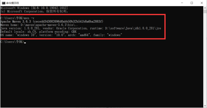 7)打开小黑窗 输入 :mvn -v,出现如下图所示即为成功,如果失败,检查变量配置有没有问题,如果没有,关机再开机即可,不要直接点重启