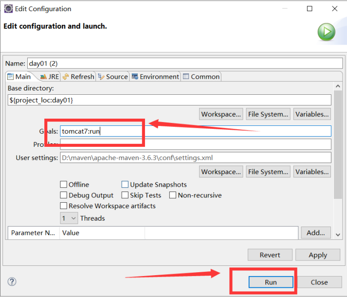 一切准备就绪后,项目右键->run as -> maven build -> 输入:tomcat7:run 项目就可以正常运行了