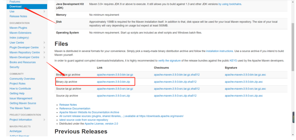 下载地址:http://maven.apache.org/download.cgi