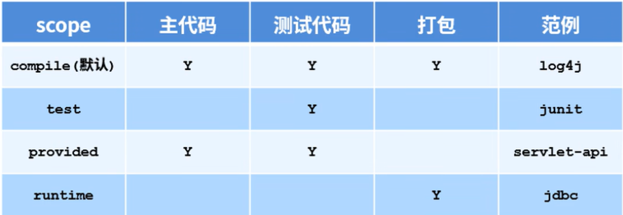 依赖的jar默认情况可以在任何地方使用,可以通过scope标签设定其作用范围
