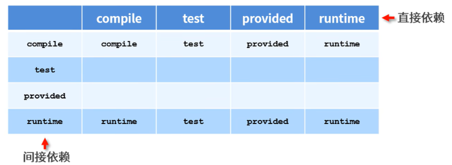 - 直接依赖:在当前项目中通过依赖配置建立的依赖关系