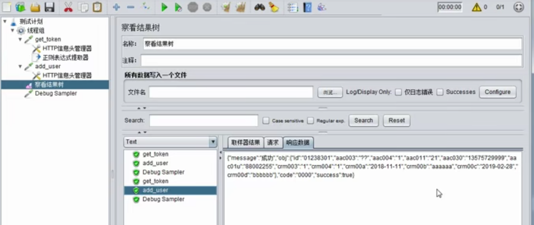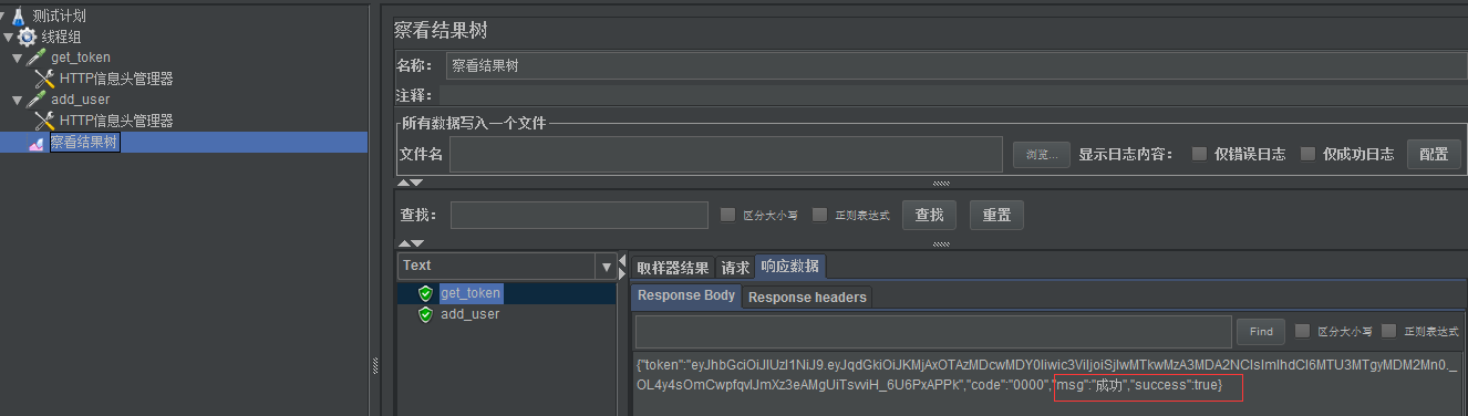 查看 debug sampler 返回的token 跟 get_token中返回的token相同,所以这个值 "token" 能够提取成功。