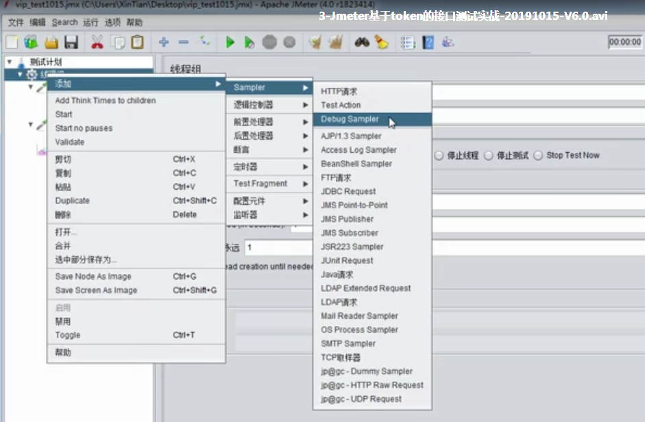 我们怎么验证正则表达式提取器中得到的值是正确的呢?需要在调试的时候,添加一个 Debug Sampler,只要有自定义的变量,这个里面都能看到。debug sampler只要放到这个线程组下面即可。