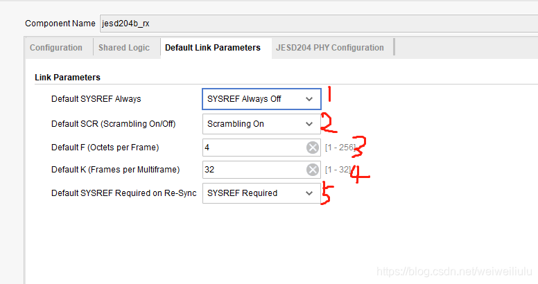 5:该选项用来选择每次链路重新同步时是否需要sysref信号,我们最好关闭它,默认链路同步时不需要该信号,只在SYNC拉高后的下一个LMFC上升沿同步就可以了,这样就方便许多。