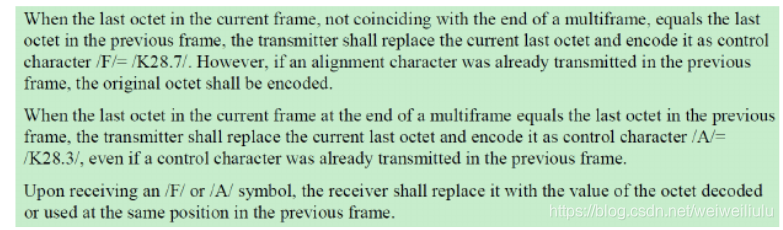 DATA:数据传输阶段(data transmission),该阶段进行数据传输,规范中要求该阶段的数据需要进行字节替换(扰码和不扰码的字节替换规则不同),用户可以根据需求确定是否需要对数据进行扰码操作。没有控制字符,获取链路全带宽。利用字符替换来监视数据同步,多帧计数器LMFC.