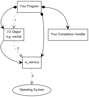 2. The I/O object forwards the request to the io_service.