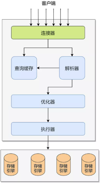 MySQL 连接器为客户端程序提供到 MySQL 服务器的连接。说得更细节一点的话,连接器其实会做两个事情,一个是管理 MySQL 连接,一个是权限验证。我们依次来解释下。