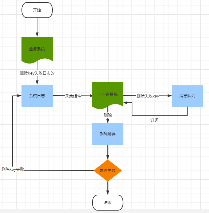 第一种方案:将删除失败的key放入消息队列,再业务系统订阅再重试机制删除