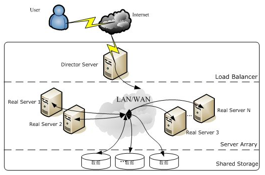LVS 架设的服务器集群系统有三个部分组成: