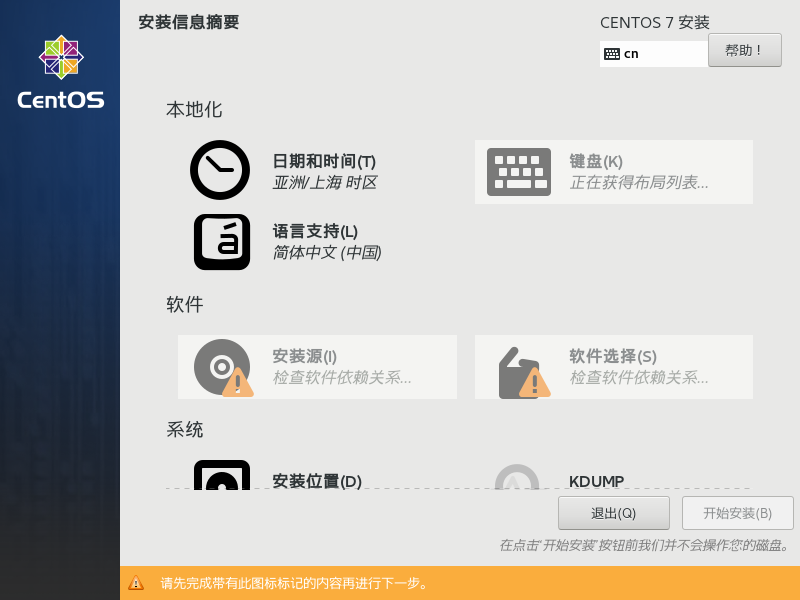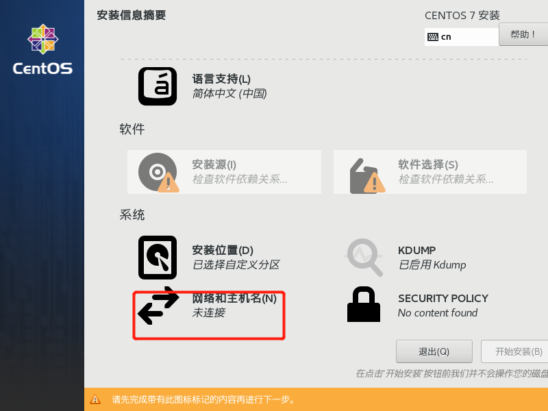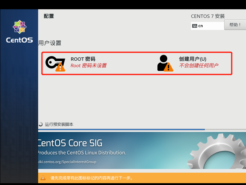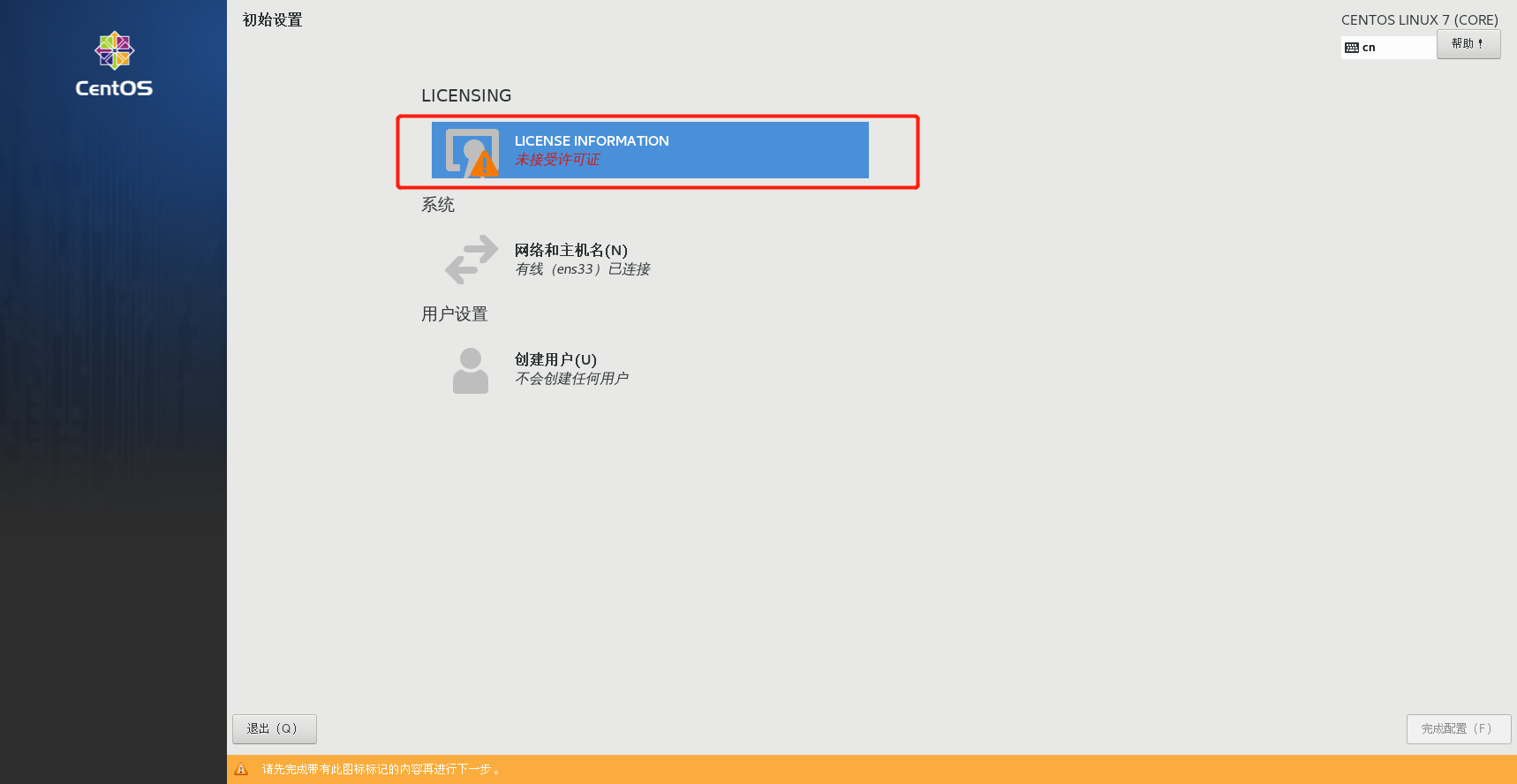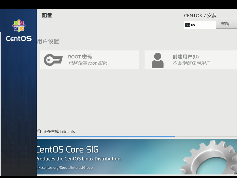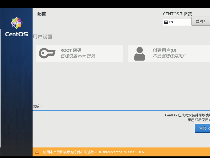 开始安装:root密码需要设置,创建用户自行设置,本人没有设置,所有直接跳过