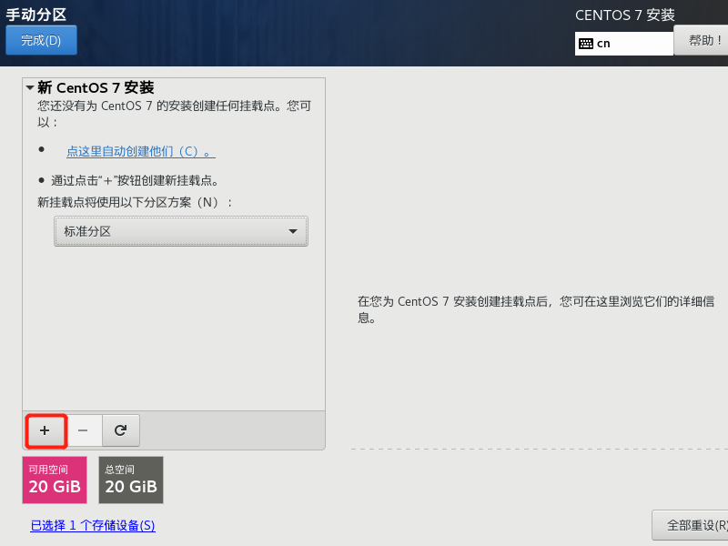 挂载点:/ 期望容量:此处不填默认即可 文件系统:ext4