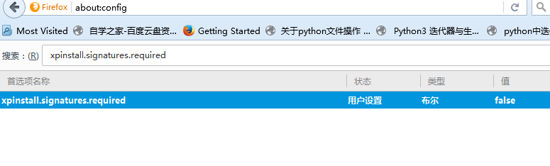 2. 找到xpinstall.signatures.required该项,将值改为false