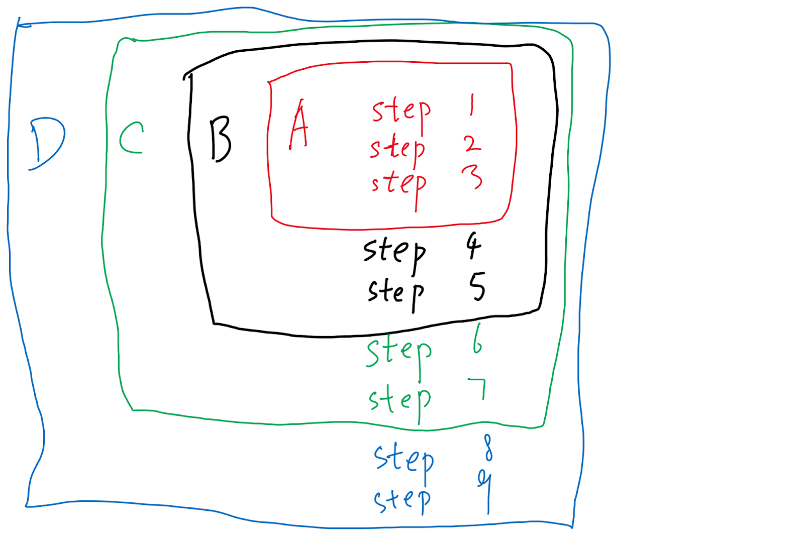 这时候我们在接触一个新的方向的时候,比如说,我们现在找到了一篇发表在2021年的论文D。然后我们开始阅读D。经过我们对于论文D的反复思考,我们发现论文D是论文C的改进,论文C是论文B的改进,论文B是论文A的改进。而论文A是这个方向的开山之作。