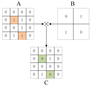 图5说明:功能融合策略。A和B是两个相邻块的输出,C是特征通过乘法融合的结果。B是语义预测,可以帮助纠正A。