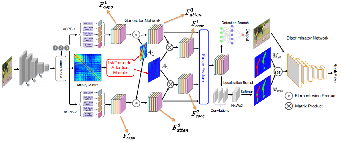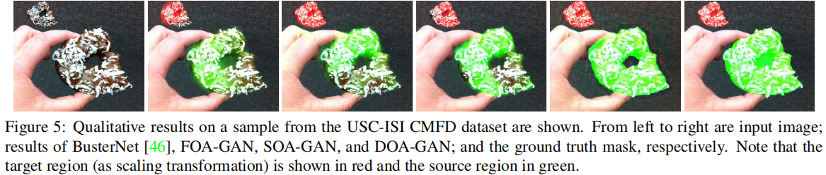 在本文中,我们提出了一种双阶注意生成对抗网络(DOA-GAN),用于复制移动伪造的检测和定位。在生成器中设计了双阶注意模块,以提取操作位置感知注意图和补丁之间的潜在共现关系。该判别器将进一步确定预测mask的精度。与先前的最先进的技术相比,所提出的DOA-GAN可以生成更准确的mask,并更好地区分出复制移动目标区域和源区域。我们未来的工作包括扩展目前的工作,以识别卫星图像中的图像级伪造,并解决其他具有挑战性的视觉任务,如共显著性检测(co-saliency detection and localization)和定位。
