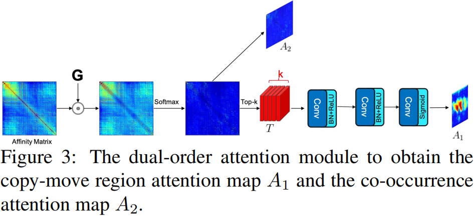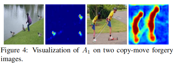 1st-order注意力模型提取篡改区域注意力图,2nd-order注意力模型提取图像中的像素依赖。两个注意力图提供更具判别性的特征用于 copy-move 的检测和定位。