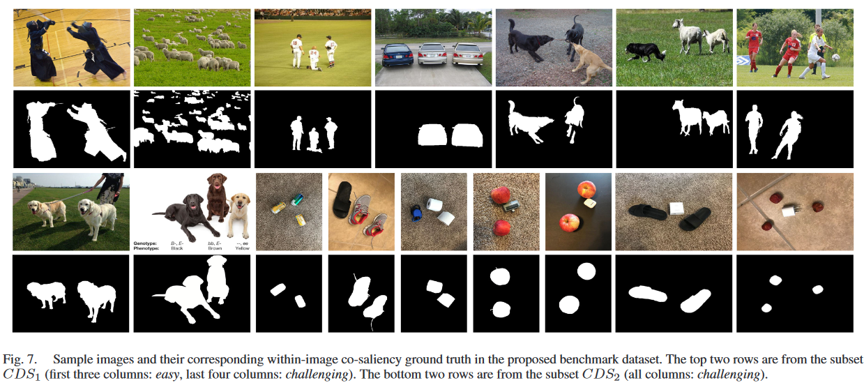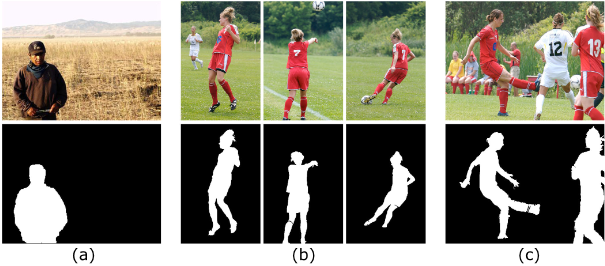 不同显著性检测问题的例图。(a) 图像内显著性检测。(b) 跨图像的共显著性检测。(c) 图像内多物体的显著性检测。