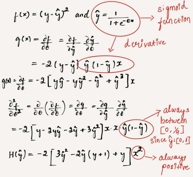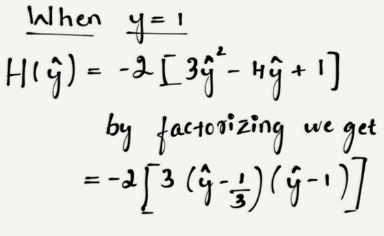 - Now, when y = 1, it is clear from the equation that when ŷ lies in the range [0, 1/3] the function H(ŷ) ≤ 0 and when ŷ lies between [1/3, 1] the function H(ŷ) ≥ 0. This also shows the function is not convex.