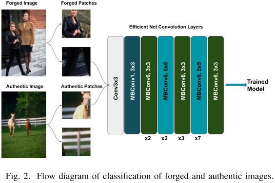 We propose a transfer learning (EfficientNet) based image classification algorithm for the classification of forged Images and EfficientNet