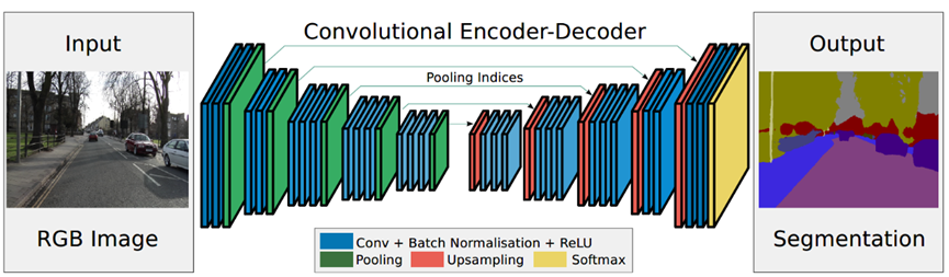 在场景理解(Scene understanding)和自动驾驶(Autonomous driving)等应用领域,仅关注分割精度并不能满足应用需要,更应该关注模型推理速度和内存占用等性能。在编解码分割框架上,不同的方法在编码器上一般都是大同小异,但在上采样解码器上各有不同。来自剑桥的研究团队认为,在内存不受限和实时性要求不高的情况下,UNet将编码器中的特征图全部连接到解码器上的操作是合理的,但在场景理解这样的高性能应用实践任务上,这种操作不够高效。基于这种动机,该研究团队提出了SegNet,通过存储最大池化层的位置索引来用于解码器的快速上采样,并且能够补充编码器下采样导致的边界信息损失。提出SegNet的论文为SegNet: A Deep Convolutional Encoder-Decoder Architecture for Image Segmentation,是基于U形结构设计的、用于实时性语义分割任务的经典网络之一。