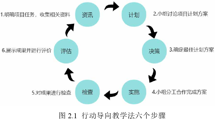 ”行动导向教学法强调学生是整个教学过程中的主体,注重培养学生的综合职业能力,形成了一个包括任务识别和信息收集在内的,以行动为导向,“资讯、计划、决策、实施、检查、评估”的完整过程。在教师的指导下,学生以解决工作任务为目标,采用多种方法搜集相关资料,通过小组合作的方式制定计划,然后选择最佳方案来完成工作任务,最后对整个行动过程和成果进行评估。这种完整的行动模式不仅有助于提高学生的基础知识技能,还能培养学生的综合职业能力,使学生更好地应对未来工作中遇到的挑战。“