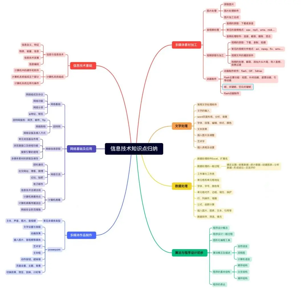在原有的信息技术知识体系中,主要涵盖了信息技术基础、文字处理、数据处理、网络基础及其应用、多媒体素材加工、作品制作以及算法与程序设计初步等方面。这些知识点较为宽泛,注重培养学生的基本技能和操作能力。