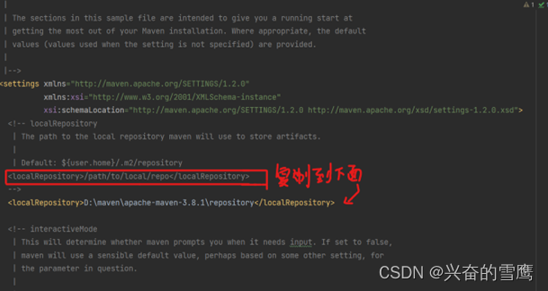 修改conf/settings.xml 中的 为一个指定目录作为本地仓库,用来存储jar包