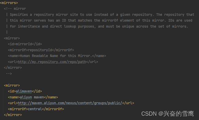 修改 conf/settings.xml 中的标签,在<mirrors>标签中