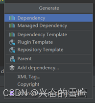 在 pom.xml 中 按 alt + insert,选择 Dependency(也是要有用过的版本)
