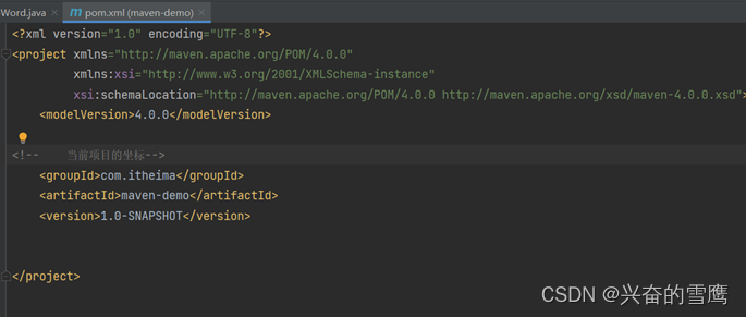 项目对象模型:通过一些简短的描述信息(写在pom.xml),来描述通过当前Maven构建的项目。
