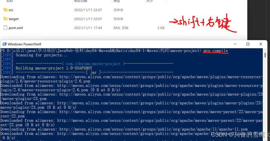 编译:点击Maven项目右键,点击Run Maven,然后点击compile